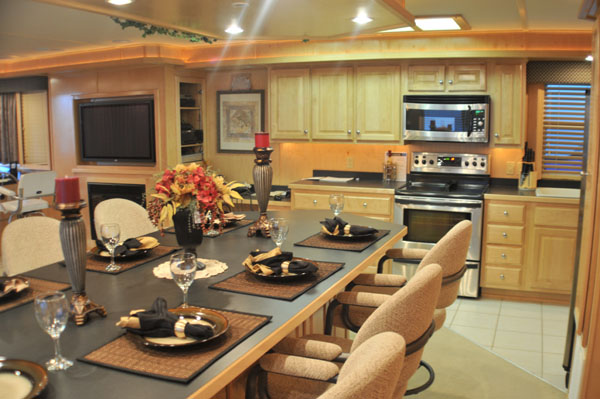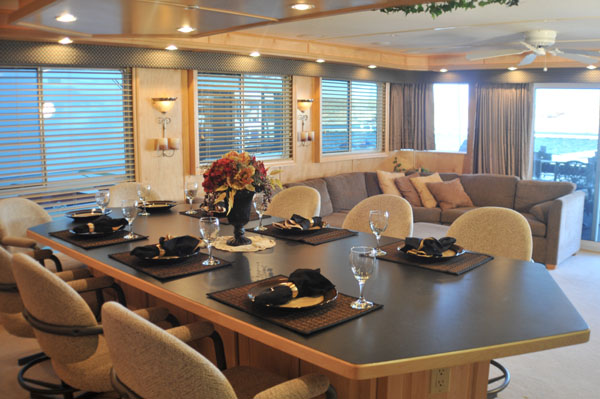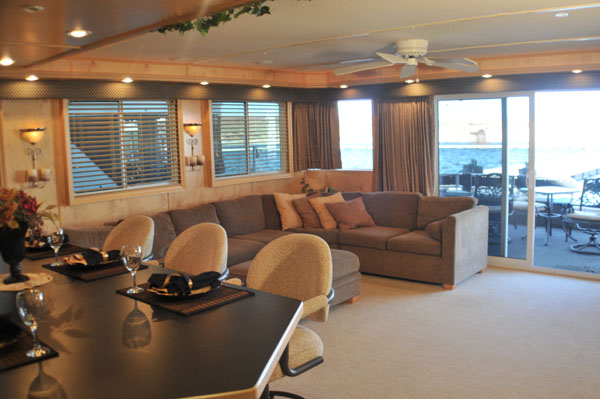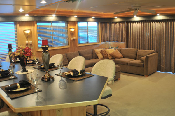 Very ELEGANT 20 x 75 houseboat. Accomodations offered are a 3 King staterooms, 1 queen sofa sleeper & 2 bathrooms.